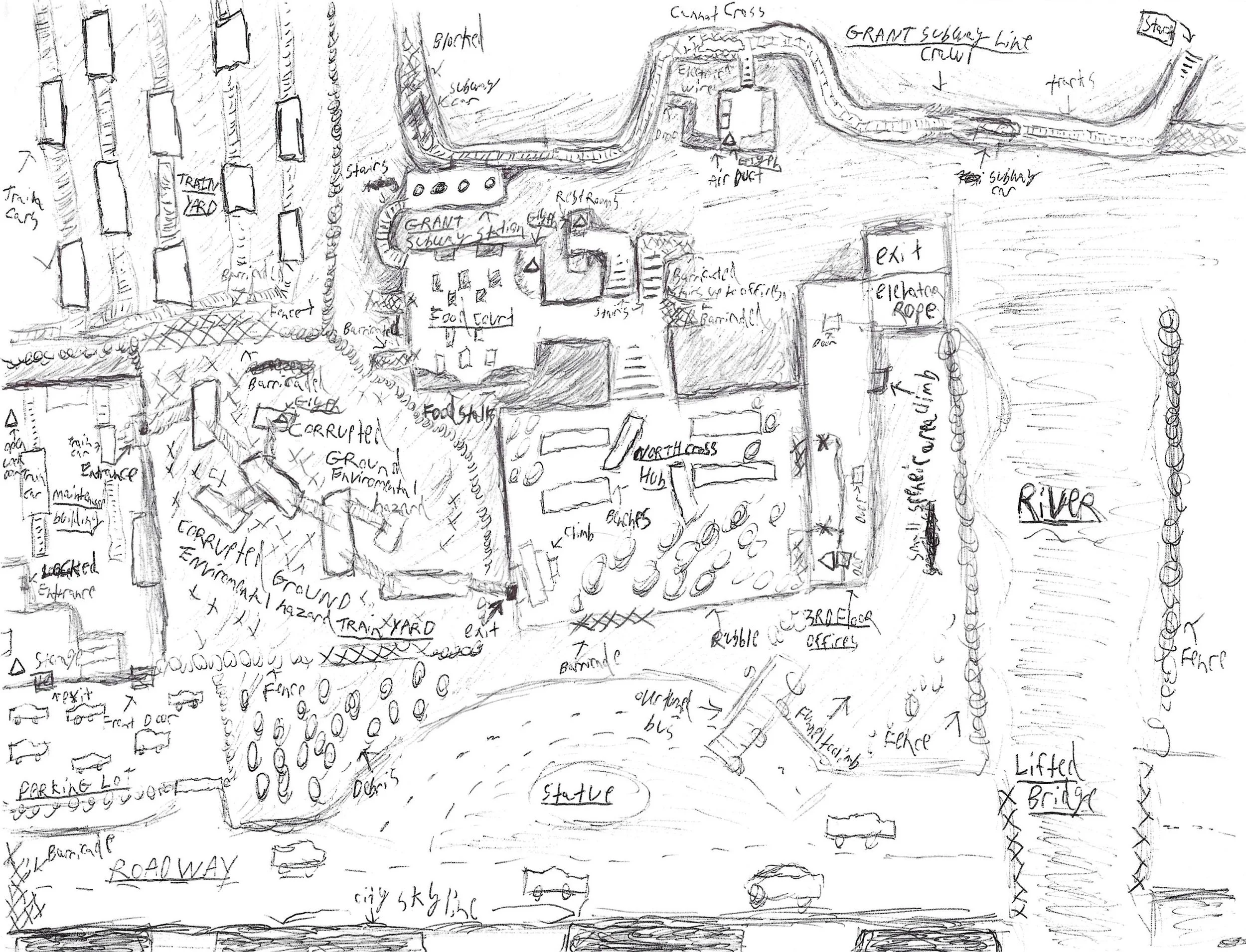 After finishing the playthroughs, I decided to hand-draw a sketch of a level layout that included both above and underground sections.