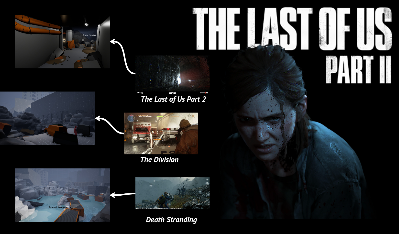 Inspired by The Last of Us, I incorporated unique and engaging traversal mechanics to "pull" the player into a dangerous and destroyed city.